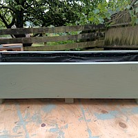 Made from upcycled materials. L90 W23.5 H24cm. Very solid and well made. Dimensions may vary slightly due to materials available.